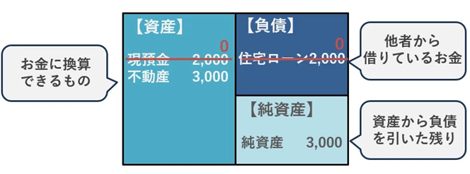 すると、現預金2,000万円と住宅ローン2,000万円は相殺されて