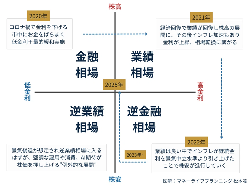 相場サイクル上に2020〜2025年のアメリカ市場の動きを